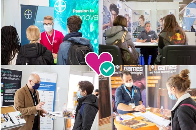 In jedem Messeort sind rund 100 Unis, Unternehmen und Behörden dabei:
